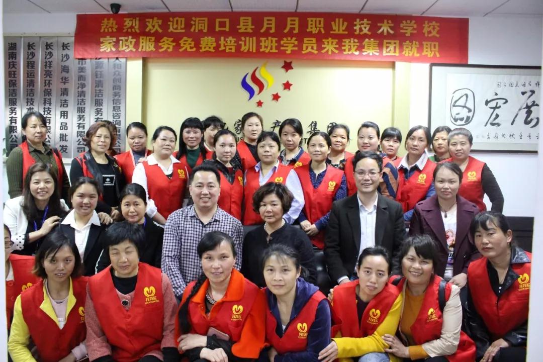湖南省邵陽市洞口縣月月紅職業(yè)技術學校王董、李總帶領27名家政服務免費培訓學員來我集團就職,此次赴長沙......